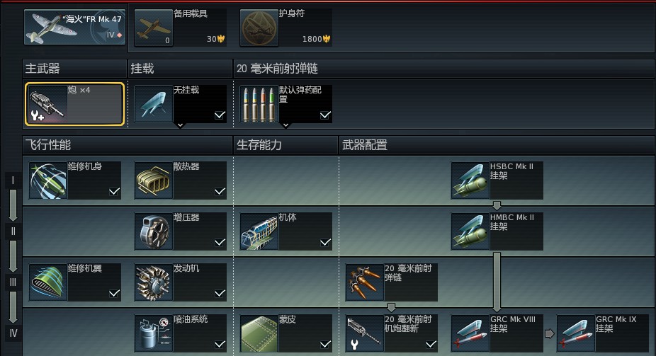 - 主武器::20毫米西斯帕诺Mk V机炮×4
